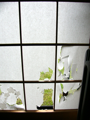原形を留めなくなる日も近い、我が家の障子。