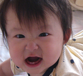 ・笑顔が変わりました。鼻の頭にシワを寄せて、まるでサルの威嚇みたいな表情が定着…なぜだ!?その笑顔が↓こちら